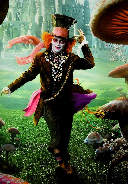 Johnny Depp como el Sombrerero LocoCon todo, es justo reconocer que la historia mejora en su segunda mitad (o que, seamos malos, el espectador, al darse cuenta de que ya no puede esperar nada creativo o sugerente, se conforma con la dignidad, básica pero indiscutible, del producto que se le está sirviendo). Así, en la parte final se consigue evocar parte de la melancolía que habría debido impregnar la atmósfera general del film desde el principio, y en parte se debe, curiosamente, al fiel Johnny Depp, quien (con cabello crespo y encarnado, y los ojos dorados) encarna a un Sombrerero ya no loco sino trasmutado en una especie de galán melancólico que suspira por la protagonista. También resultan excelentes la batalla entre Alicia (ataviada como un deslumbrante arcángel de blanca armadura) y el Jabberwocky en unas ruinas cuyo vértice lo supone una escalera de caracol que se retuerce hacia la nada; o el plano elevado que muestra que el campo de batalla en el que van a enfrentarse los ejércitos de las dos hermanas está cuadriculado como un tablero de ajedrez (idea extraída, aunque solo en el aspecto visual, de Alicia a través del espejo).