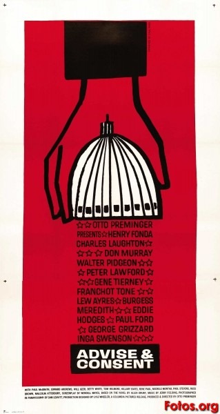 Director y productor: Otto Preminger. Guión: Allen Drury; novela de Wendell Mayes. Fotografía: Sam Leavitt. Música: Jerry Fielding. Reparto: Henry Fonda (Leffingwell), Charles Laughton (Senador Cooley), Don Murray (Senador Anderson), Franchot Tone (Presidente), Walter Pidgeon (Jefe de la mayoría). Dur.: 139 min.