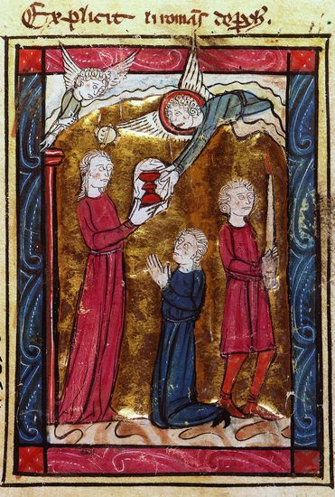 Los continuadores franceses de Chrétien convertirán el Grial en el centro de la leyenda artúrica. El caballero Robert de Boron, en las décadas iniciales del siglo XIII, es el primero en acercarse a ella con la pretensión de dedicar un ciclo compuesto por varias obras, en verso, la primera conservada en su versión original (José de Arimatea o la Novela de la Historia del Grial), las otras en versiones prosificadas por otra mano. A lo largo de ellas, la historia de Arturo y sus caballeros pasa a convertirse en una parábola de la historia de la Salvación al girar toda ella en torno al Grial. Objeto que se define ya como el cáliz de la Última Cena donde fue recogida la sangre que Cristo derramó en la crucifixión (es decir, se convierte ya para siempre en el Santo Grial). La Tabla Redonda deja de ser una mera orden de caballería para constituirse en la prolongación en el tiempo de la mesa de la Última Cena. Uno de los elementos introducidos por el caballero Boron tendrá especial fortuna en la iconografía artúrica: se trata de la espada que aparece clavada en el yunque y que revelará la legitimidad del joven Arturo para ostentar la corona de Inglaterra.