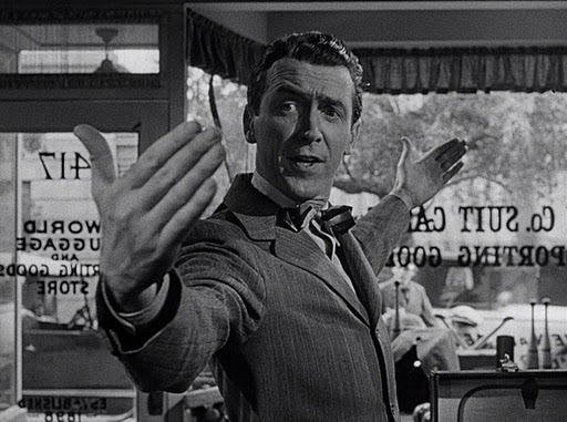 Queda un último elemento en el que Capra apoya su éxito y es, por supuesto, el protagonismo de James Stewart, en uno de los (múltiples) papeles de su vida. El ingenuo Mr. Smith que fue a Washington como un caballero sin espada, en el espacio de los siete años que transcurren entre las dos películas, también pasó por una guerra y por el inevitable proceso de maduración y envejecimiento… por mucho que en gran parte de la historia interprete a un personaje mucho más joven de lo que el ya casi cuarentón Stewart representaba. Su George Bailey se beneficia de esa maduración interior en el actor, que en poco tiempo le permitiría convertirse en una ambigua presencia en las películas de Alfred Hitchcock y en un emblema de la violencia en los westerns de Anthony Mann. James Stewart, con su versatilidad expresiva, con su facilidad para pasar de la ligereza a la tensión, de la incertidumbre a la certeza, del dolor a la alegría, dota a su personaje de una hondura inolvidable. Las lágrimas que nos contagia en el final de la película son por ello de solidaria emotividad y no de caída en el fácil sentimentalismo.