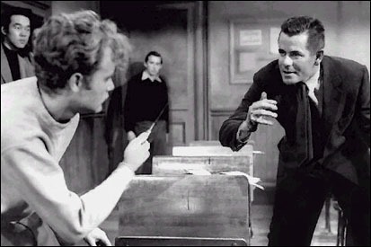 Las cuestiones que plantea Richard Brooks —que adapta una novela de Evan Hunter, al parecer basada en experiencias personales como profesor en el neoyorquino Bronx— sin duda son apasionantes, por no hablar de su atemporalidad: con retraso, pero esos problemas acabaron por llegar a nuestro país, donde a principios de los 60, fecha de estreno, pudo parecer una curiosidad, «cosas que aquí no suceden». Ya he señalado que la lectura que hace Brooks, clásico cineasta intelectual de tradición liberal, plagado de buenas intenciones y con una inquebrantable fe en el ser humano, resulta demasiado ingenua: tras una larga travesía plagada de fracasos pero también de pequeños avances, Dadier consigue establecer un mínimo status quo dentro de su clase, una mínima corriente de respeto y trabajo a costa del enfrentamiento con el malvado «oficial» de la historia, el irregenerable Artie West, líder de la principal banda del barrio, quien, lúcido, ha advertido pronto que aceptar a Dadier es aceptar un camino diferente al que él intenta marcar (o sea: el mundo del delito) y por ello se esforzará en destruir al profesor de todos los modos posibles, directos (ataques físicos) o indirectos (calumnias anónimas sobre su presunto racismo, llamadas telefónicas y cartas difamatorias dirigidas a su esposa).