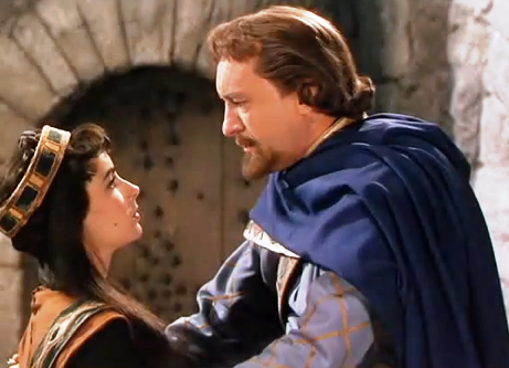 Del mismo modo, imágenes como aquella en que Rebecca se sitúa en el borde de la torre almenada amenazando a Bois-Guilbert con tirarse al vacío, o con Rebecca vestida de paje en la habitación de Ivanhoe o con Rebecca espiando la llegada del protagonista tras la cortina de flecos (¿es Thorpe quien sabe expresar el inmediato enamoramiento de la joven, es Elizabeth Taylor o es el espectador rellenando huecos?) o con Rebecca aceptando el homenaje del caballero en el torneo de Ashby. Imágenes todas ellas con Elizabeth Taylor luciendo una belleza impresionante, que poseen una entidad romántica que obliga a pasar por alto el acartonamiento de otros elementos, empezando por el mismo Robert Taylor, que está bien cuando debe lucir nobleza y gallardía pero no cuando debe sugerir ese amor que sus labios no pueden expresar (o cuando debe pelear: el mucho más dinámico Stewart Granger no tenía rival posible con él).