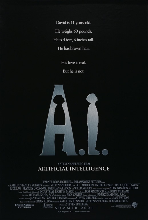 Dirección: Steven Spielberg. Guión: Steven Spielberg; cuento Los superjuguetes duran todo el verano, de Brian W. Aldiss, adaptado por Ian Watson. Fotografía: Janusz Kaminski. Música: John Williams. Reparto: Haley Joel Osment (David), Jude Law (Gigolo Joe), Olivia Williams (Monica Swinton), William Hurt (Dr. Hobbie). Dur.: 146 min.