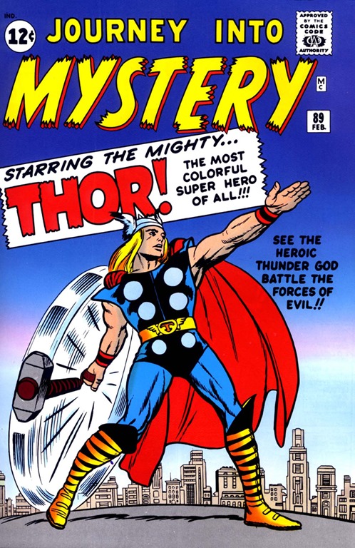 A mediados del año 1962, Stan Lee, el alma mater de la editorial Marvel, ya había dado vida a Los 4 Fantásticos, a La Masa y a Spider-Man. En pleno torbellino creativo, decidió que era hora de un nuevo personaje, distinto a los demás. Supongo que, a esas alturas, Lee no era consciente de estar creando una de las grandes mitologías del siglo XX, pero su pensamiento fue recurrir precisamente a la mitología. No a la más conocida, la griega, sino a la nórdica. Lee tuvo claro que, de todas las figuras que ésta ofrecía, la más aprovechable en términos heroicos, tanto por sus propias características como por potencia visual, era la de Thor, el hijo de Odín, padre de todos los dioses, y él mismo dios del trueno. Un enorme vikingo blandiendo un martillo gracias al cual es capaz de volar y que le otorga un gran poder. Esa fue su idea básica, que entregó a su propio hermano, Larry Lieber, para que pusiera los diálogos del primer episodio, y en especial a su mano derecha en la creación de tanta maravilla, Jack Kirby, cuyos lápices serían pasados a tinta por Joe Sinnott. Ese fue el equipo que creó a Thor en el seno de una colección ya existente, Journey into Mistery (nº 83, de agosto de 1962).