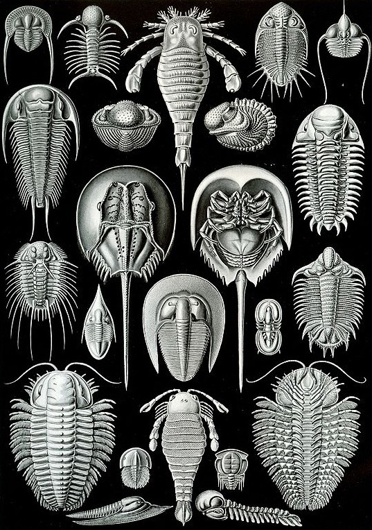 Un último y admirado comentario. Las ilustraciones que acompañan al volumen, a toda página en el comienzo de cada relato, son láminas realizadas por el naturalista Ernst Haeckel —principal divulgador del darwinismo en Alemania y hombre muy afín al nacionalismo étnico germano— para su obra Formas artísticas de la naturaleza. Las láminas (dos de los cuales ilustran este comentario) reproducen un caleidoscopio de especies animales cuyo «diseño», unas veces geométrico, otras veces sencillamente incalificable, casi parece ciertamente, y como indica Óscar Mariscal, la fuente de inspiración de los horrores lovecraftianos. Aunque solo fuera por esa bella, al tiempo que malsana, asociación de imágenes entre lo natural y lo literario, merecería tenerse este volumen en nuestra biblioteca.