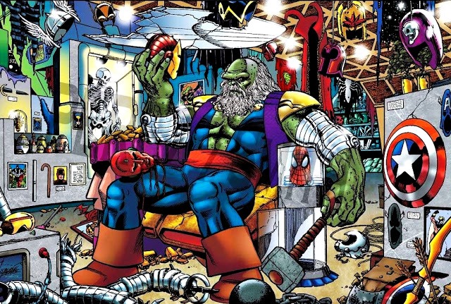 Se titula Futuro imperfecto, y es posible que sea la obra maestra de El Increíble Hulk a lo largo, por lo menos, de las cuatro décadas de historia que yo controlo de él. Al mismo tiempo, es el colofón definitivo a este concepto de la personalidad escindida en que se basa el personaje. En esta historia, el Hulk inteligente llega hasta un futuro post-nuclear cuyo tiránico gobernante es… él mismo, el último superviviente de los viejos héroes, salvado por su extraordinaria resistencia a la radiación. Bajo el sarcástico título de El Maestro, este Banner-Hulk del futuro se ha convertido en una degradada versión de sí mismo, en un gobernante cuya inteligencia superior ha salvado lo que queda de la humanidad, reconstruyendo el principio de civilización, pero para someterla a la esclavitud y utilizarla para saciar la mera satisfacción de sus instintos (significativamente, ante todo del placer sexual: el tono adulto del cómic es notable). Este cínico Banner intenta convencer a su alter ego del pasado para que se una a él, pues, señala, nada debe a esos débiles seres que una vez, porque lo calificaron de monstruo, hicieron todo lo posible para destruirlo («Te lo robarán todo», le advierte, y esa frase perseguirá a Banner durante mucho tiempo, más allá de esta aventura).