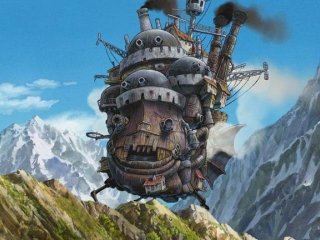 El otro elemento que sin duda estimuló la imaginación de un animador tan virtuoso como Miyazaki fue el escenario central de la película: ese castillo efectivamente ambulante que diríase una masa compuesta por partes al mismo tiempo orgánicas (las cuatro patas de pájaro que lo trasladan, la boca que se abre con su lengua, las diversas cabezas con ojos enormes que se superponen y le dan su altura) y estructurales (sus distintas partes tan pronto un barco de madera como una factoría con grúas y humeantes chimeneas e incluso una serie de búnkers, cuando los ojos de esas supuestas cabezas resultan ser cañones —que, eso sí, no disparan un solo tiro en toda la historia).