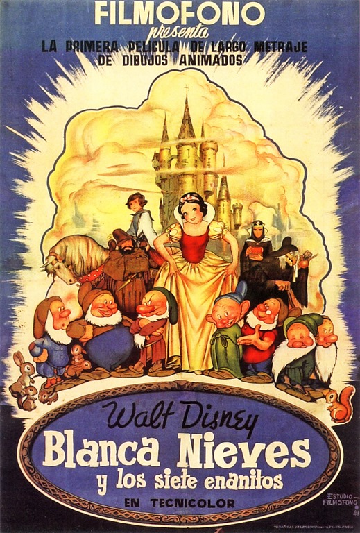Al lado de estas secuencias —a las que añado, claro, las de la creación de la manzana envenenada en los lóbregos subterráneos del castillo o la persecución final de los enanos a la bruja y la muerte de ésta, castigada literalmente por el cielo bajo la forma de un rayo justiciero—, el resto de la historia no puede evitar palidecer un tanto, por mera cuestión de intensidad (y de sentido de la medida: acaba cansando tanta canción…). Pese a ello, la inventiva de Disney emerge por doquier, sobre todo en el entrañable diseño de todos y cada uno de los enanitos, pero sobre todo de los dos más carismáticos, ese Mudito (el original Dopey, esto es, Atontado —dejado tal cual en el emblemático doblaje realizado por el mexicano Edmundo Santos en los años 60— se le ajusta mejor) dibujado como un bebé crecidito (de ahí que sea el único totalmente calvo y que no hable… porque no lo necesita para expresarse) o el genial Gruñón, cuya reticencia (hasta un punto, claro…) con respecto a la heroína siempre me ha resultado admirable. En fin, Blancanieves y los siete enanitos sigue siendo un film que no merece explicarse, sino disfrutarse.