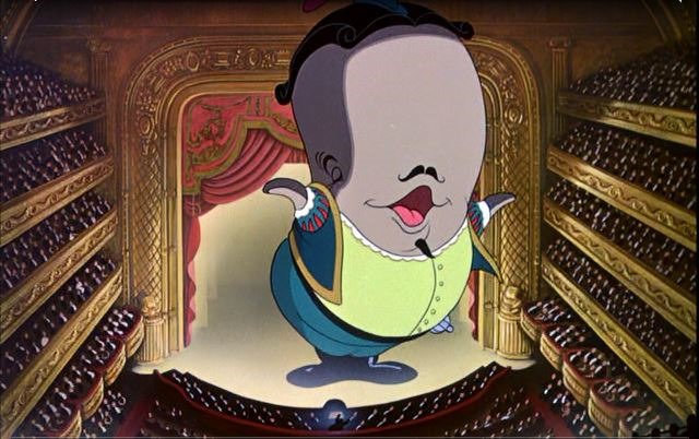 El segundo es Opera Pathetique (luego rebautizado como Willie the Operatic Whale), cuya historia es todavía más original y delirante: nada menos que la existencia de un ballenato (según dice la versión hispana, que las imágenes más bien muestran a un cachalote) que inunda los siete mares con una voz prodigiosa —posee la extraordinaria cualidad de poder reproducir tres tonos operísticos diferentes— lo cual llama la atención de un audaz empresario de ópera que busca una nueva voz, y que llega a la (patéticamente equivocada, de ahí el título original) conclusión de que el animal se ha tragado a un tenor. Los dibujos son Disney en estado puro, de ahí que no sea por el lado de la animación (espléndida, eso sí) por donde llame la atención, sino por el puro surrealismo de la historia, que alcanza su cima cuando el ballenato, Willie, sueña con el triunfo en los escenarios de ópera más prestigiosos de medio mundo: no tiene precio ver al ballenato cantando I pagliacci, Fausto o Tristán e Isolda a lo Pavarotti, con su enorme corpachón disfrazado según las necesidades de cada uno de los personajes protagonistas de esas obras y el público entregado a sus pies.
