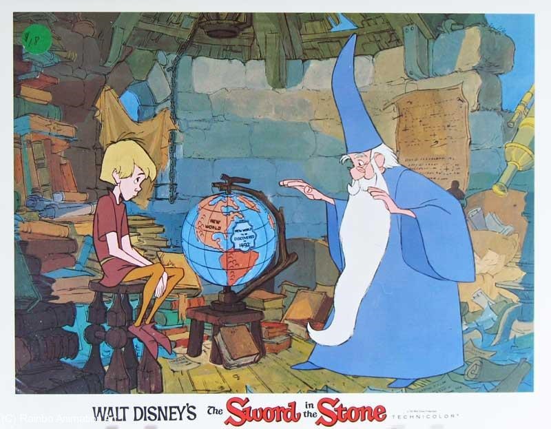 Merlín el encantador (1963) es la película que yo prefiero de entre todos los Disney sesenteros. Ello se debe no sólo al encanto (valga el juego de palabras) que desprende, sino al estupendo planteamiento del que parte: realizar un canto bastante contagioso a la inagotable capacidad para la curiosidad del ser humano, todo ello bajo la cubierta de una muy particular aproximación al que es uno de mis mitos culturales favoritos, la leyenda artúrica.