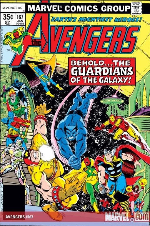 La saga comenzaba en el nº 167 de The Avengers cuando el grupo es reclamado para investigar la aparición sobre la órbita terrestre de una gigantesca nave con forma de anillo, que no es sino Dique Seco, la estación espacial con la que los Guardianes se habían hecho en el último número de su propia colección, Marvel Presents: Guardians of the Galaxy nº 12 (VIII/1976). Tras el típico y tópico desencuentro inicial, Thor hace las presentaciones oficiales. Los Guardianes afirman haber viajado al siglo XX tras rastrear la marcha a esta época de su enemigo Korvac: su temor es que altere el tejido del tiempo actuando sobre uno de sus miembros, el comandante Vance Astro, que en esta época es un niño de poco más de doce años (para más detalles sobre esta historia, ver este artículo). Los Vengadores se comprometen a ayudar a los Guardianes en la búsqueda de Korvac. Pero sin que puedan saberlo, justo en ese mismo momento un individuo rubio y de inescrutable expresión acaba de entrar en contacto (en un pase de vestidos diseñados por la Avispa, una de las vengadoras) con una modelo llamada Carina Walters… tras lo cual se ha desvanecido literalmente en el aire, sin que nadie lo haya advertido.
