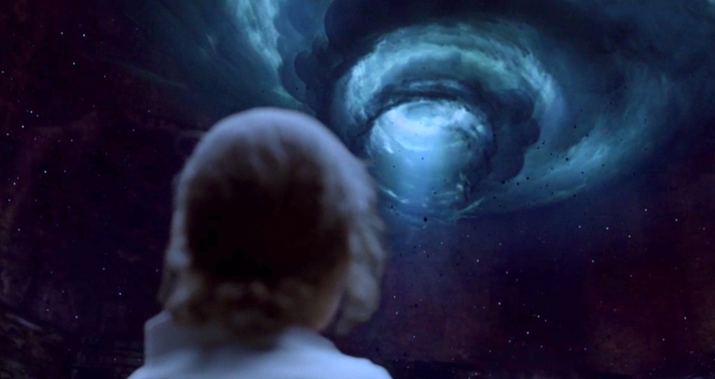 Además, el enfrentamiento se produce en el dédalo de túneles de una misteriosa construcción ahogada por la lujuriosa vegetación —de hecho, tan enterrada que diríase que es anterior a la naturaleza—, en cuyo interior los dos ex policías encuentran un fantasmal bosque de cuyas ramas secas penden cuerpos envueltos en sucias sábanas (a modo de momias). Y cuyo corazón es un espacio circular abovedado a cielo abierto, como un corrupto Panteón romano, al cual el asesino atrae al más vulnerable de los dos policías, a Rust, para sacrificarlo, allí en el corazón de Carcosa, al Rey Amarillo, un fantoche construido con ramas secas y cráneos humanos. Justo antes, Rust sufrirá una última alucinación: en las ominosas paredes de esa cúpula él se ve ante un formidable vórtice estelar que bien podría ser la puerta al corazón de la oscuridad que toda su vida ha sabido que existía. Para mí, es sin duda el plano más inolvidable de toda la serie, de una belleza y una fuerza dramática que dejan sin aliento.