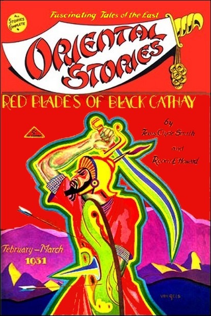 Otra de las historias orientales de Howard, Espadas rojas de CatayUn argumento, como se deduce de su recensión, completamente delirante, que sin embargo Howard narra con una convicción tan plena que el lector acaba aceptando cuanto le proponen sus líneas ,y además el personaje de Guzmán está bien caracterizado, siguiendo el clásico patrón howardiano del guerrero casi sobrehumano. En especial, resulta memorable la ambientación de El Cairo como una ciudad cosmopolita en la que cada sombra esconde un peligro y donde la supervivencia requiere de una astucia, una inteligencia o un valor sin límites. En fin, se trata de un cuento espléndido, cuyo crescendo de violencia nihilista es sobrecogedor y en el que, además, destaca sobremanera el fetichismo sado-erótico relacionado con sus personajes femeninos, por cierto otro de los fuertes de Howard.