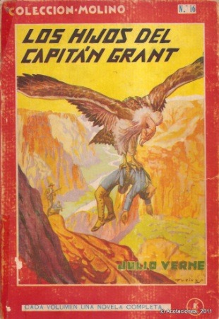 Edición Molino de Los hijos del capitán GrantTodos los incondicionales de Julio Verne tenemos una novela favorita (o dos, o tres) de entre todos los capítulos que componen los Viajes Extraordinarios. Para unos es el periplo submarino a lo largo de 20.000 leguas, para otros la estancia en la isla misteriosa o el viaje a las entrañas de nuestro planeta o la vuelta alrededor del mundo del imperturbable Phileas Fogg o incluso la tenacidad del correo del zar frente a cuantos obstáculos se atraviesan en su camino a través de la inmensidad de Rusia. Pero si tuviéramos que recomendar una novela que resuma de modo más completo lo que es el universo verniano, su quintaesencia, puesto que supone un notable catálogo de sus principales  elementos argumentales, narrativos, geográficos, dramáticos e incluso, por qué no, obsesivos, no cabe duda de que la mayoría elegiríamos Los hijos del capitán Grant. Por encima de todo, la historia es un conmovido himno del autor tanto al poder desencadenado de la naturaleza (pocas novelas son más pródigas en desastres naturales: aludes, riadas, huracanes, erupciones volcánicas) como a la capacidad del hombre para dominarla (de ahí la importancia, más que nunca en la novelística verniana, de establecer claramente la historia del descubrimiento y posesión por parte del hombre de los distintos territorios y parajes por donde tiene lugar el viaje, que se entremezclan siempre de modo admirable con la peripecia aventurera: en absoluto sobra esa crónica, sino que por el contrario es imprescindible). En fin, si no es la obra maestra de Verne, sí es la más grandiosa de sus novelas.
