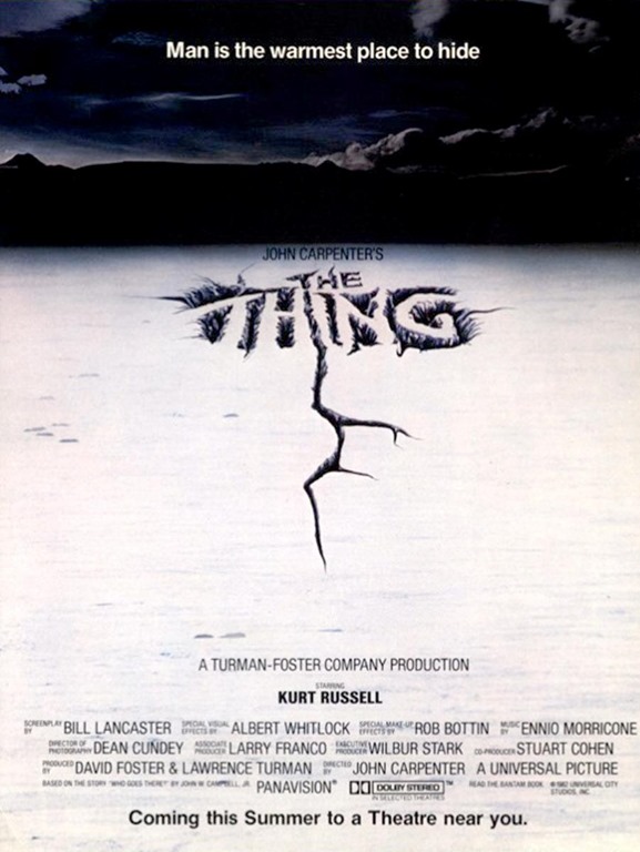 Dirección: John Carpenter. Guión: Bill Lancaster. Fotografía: Dean Cundey. Música: Ennio Morricone. Reparto: Kurt Russell (MacReady), Keith David (Childs), Richard Dysart (Dr. Copper), Donald Moffat (Garry). Dur.: 109 min.