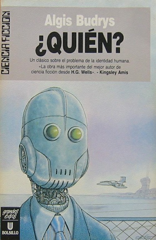 El título original de La máscara de acero —poco creativo, e incluso confuso, el rebautizo español— es ¿Quién?, pues el film se basa en una novela de 1958 publicada por un olvidado escritor de ciencia-ficción, el lituano-norteamericano Algis Budrys. Ese pronombre interrogativo da idea de que en la novela tiene mayor relevancia la reflexión existencial que la intriga de espionaje, y es que, advierto, al comparar ambas obras se reconoce que lo mejor de la película ya se encuentra en el libro, que es el que establece las coordenadas del drama existencial en torno a la dificultad de determinar qué es lo que conforma realmente la esencia de nuestro ser. No en vano, Budrys fue un autor característico del género en la segunda mitad del siglo XX, un hombre preocupado no por lejanas galaxias ni héroes del espacio sino por una ciencia-ficción con los pies bien aferrados a la Tierra, que utilizaba sus premisas fantásticas para mejor hablar del mundo que le rodeaba, en la tradición de un John Wyndham o un Fredric Brown.