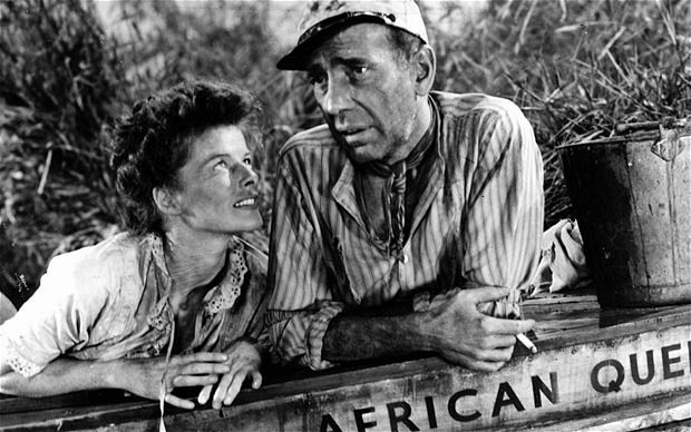 Pero da igual porque existen Charlie Allnut y Rosie Sayer. Bogart, un actor del que no se puede decir que fuera dúctil, siempre sorprenderá por su papel de desastrado y borrachín marino de agua dulce, que despierta una ternura muy difícil de definir, y que delata a un intérprete de extraordinaria generosidad, capaz de encarnar un personaje en las antípodas de su imagen estelar sin importarle su aparente vulgaridad y arriesgándolo todo: solo la escena en que imita a los monos y a los hipopótamos para hacer reír a su amada vale ya por toda una carrera. Por eso, incluso quienes sienten una completa indiferencia por las famosas estatuillas doradas consideran que en este caso el premio estuvo totalmente justificada. Hepburn, con 44 años, encarnaba por primera vez un rol que desde entonces repetiría en más de una ocasión, el de solterona que encuentra una última oportunidad para el amor cuando ya se creía agostada para siempre. Desde los primeros momentos de la historia, en que aparece seca y envarada como un junco inflexible, hasta su rendida caída en los brazos del amor, que incluso hace que se vaya embelleciendo poco a poco a lo largo de la película, la actriz crea uno de los personajes más imborrables de su carrera. Asistir al juego de miradas y gestos cómplices entre Bogart y Hepburn —pocas veces unos actores han sabido tocarse como ellos dos en una película— supone la mejor definición del calor y la ternura entre una pareja en el cine.