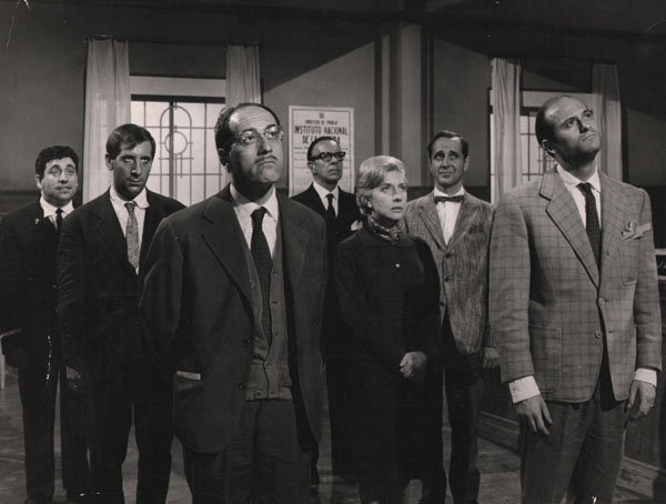 Dirección: José María Forqué. Guión: Vicente Coello; historia de Rafael J. Salvia, Vicente Coello y Pedro Masó. Fotografía: Alejandro Ulloa. Música: Adolfo Waitzman. Reparto: José Luis López Vázquez (Galindo), Cassen (Martínez), Gracita Morales (Enriqueta), Manuel Alexandre (Benítez), Alfredo Landa (Castrillo), Agustín González (Cordero), Manuel González Díaz (Don Prudencio), Katia Loritz (Katia Durán), José Orjas (Don Felipe). Dur.: 95 min.