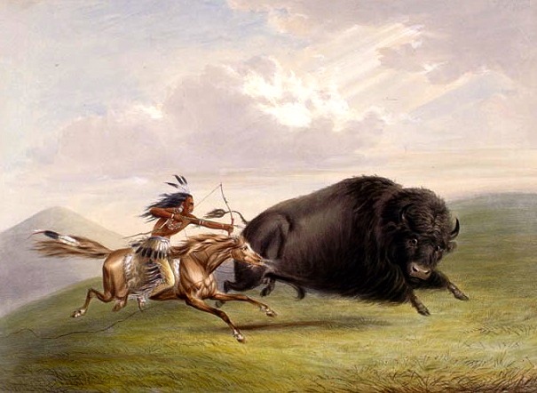 Ave de Trueno, por George CatlinEs justo además encomiar la noble defensa que May hace de los indios, denunciando sin ambages el expolio al que han sido sometidos por los hombres blancos y el triste destino de desaparición física o aculturación a que están condenados —en este sentido, Winnetou cuenta con varios parlamentos inolvidables. Lo cual no quita que también, y como buen hijo de la época, en su mirada sobre el indio se entrevere un indisimulable etnocentrismo, expresado ante todo en ese elemento de la civilización blanca que la hace superior a todas: el cristianismo.