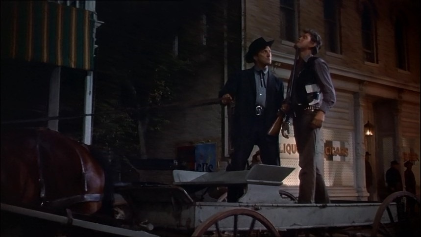 Earp es el hombre de ley que ha acabado considerando que su mero juicio ya representa lo que es correcto: una aureola de puritanismo casi mormónico lo envuelve a su paso (Holliday lo llamará varias veces «predicador») e impone una distancia entre él y el resto de la humanidad, incapaz de estar a su altura. Holliday es el westerner sin ataduras, al que la «buena sociedad» contempla con desconfianza y prefiere que salga cuanto antes de su ciudad (de hecho, la primera reacción de Earp al conocerlo es justo esa: advertirle que debe irse de su Dodge City, la ciudad donde es sheriff). Un tipo de westerner destinado, por ello, a la desaparición, aunque no vaya a ser en el duelo en O.K. Corral: pero que debe dejar sitio más pronto que tarde, como simboliza su famosa tuberculosis. Consecuentemente, cada uno de esos dos hombres condenados a ser amigos envidia en el otro lo que él no tiene, no puede tener. Earp, la libertad, la posibilidad de no estar obligado a caminar por un sendero del que ya no puede desviarse ni un milímetro, aunque anhele un descanso en su cruzada contra el delito; Holliday, la buena reputación, la estima de todos, la convicción de que Wyatt es la roca que él no puede ser. Y Holliday puede apreciarlo en su condición de caballero de buena cuna arrastrado a la degradación por la historia (su familia se arruinó con la derrota del Sur) y la degeneración de su crianza: su atildado exterior encubre, como ya he indicado, un cuerpo minado poco a poco por la muerte.