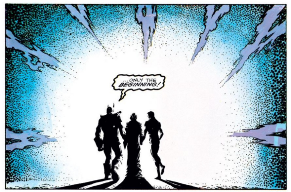 La culminación de la historia no puede ser mejor. Mientras en la realidad «exterior» Mar-Vell entra en coma, en esa dimensión interior que solo pueden conocer aquellos que están a punto de cruzar el umbral del otro lado, el Capitán se encuentra como guía particular, como su Virgilio, nada menos que a su archienemigo Thanos, quien con notable serenidad —templando su última resistencia hasta hacerle aceptar lo inevitable— lo conduce hasta su amada, la Muerte, con su perpetua túnica y el bello rostro femenino bajo la capucha. Y Marvel lo acepta, no sin antes desvanecer la ilusión que él no necesita para que la Muerte muestre su verdadero rostro cadavérico. Tras recibir el último beso, Thanos le invita a darle la mano para iniciar ese viaje definitivo en el que «ella nos mostrará lo que no tiene fin… sólo principio». No puede haber mejor despedida del Capitán que esa fabulosa viñeta con los dos viajeros, cogidos de la mano de la doncella que nunca habla, penetran en la blancura cegadora de la nada. Así, si es seguro que el Capitán Marvel no sea el personaje más memorable que haya poblado las páginas de la Casa de las Ideas, sí es desde luego el que mejor ha sabido despedirse.