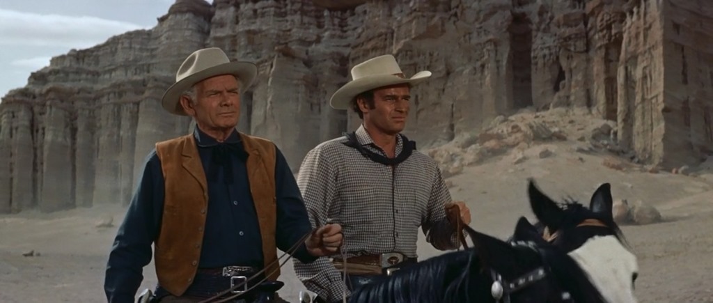 Lo que le pasa a Horizontes de grandeza es que los personajes son muy unidimensionales, salvo, quizá los de Heston y Burl Ives, y el de Gregory Peck es tan, tan «positivo» (para contrastar con la «gente del Oeste», qué esperaba encontrar un marino en un sitio como aquel) que a veces resulta inverosímil. Coincido en que la entrada en el Cañón Blanco es uno de los mejores momentos del film, junto con las escenas a dúo de Peck y Simmons…y las de Burl Ives y Chuck Connors. En el mismo tono de desmesura, hay que decirlo, se encuentra la archifamosa partitura de Jerome Moross.