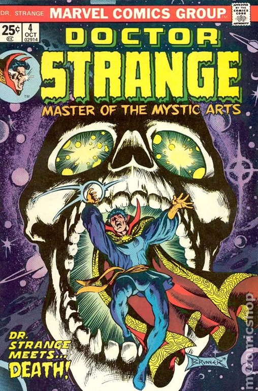 Finalmente, en su última aventura ha de enfrentarse a su propia muerte, pues el desprecio del miedo a morir da acceso al estadio final en el dominio de las Artes Místicas. Y el ejecutor, conocido como Daga Plateada, es nada menos que un antiguo cardenal del Vaticano, apartado del papado en el último instante, que se obsesiona con la idea de que Dios lo ha reservado para un empeño mayor: expurgar el mal del mundo. Y puesto que toda magia es demoniaca, el Doctor Extraño es el archienemigo del bien. Por medio de este personaje (cuyo apariencia física es la de un severo hidalgo español, de cuerpo enjuto y mirada ceñuda, como una inquietante subversión de don Quijote), Englehart y Brunner realizan un terrible retrato del fundamentalismo: de ahí que, en el final, Daga Plateada quede momentáneamente derrotado, pero no inerte, porque ya sabemos que es difícil que el fanatismo pueda morir alguna vez.