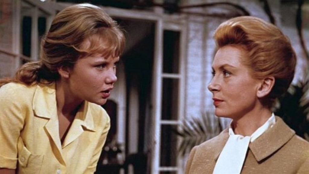 Deborah Kerr y Hayley Mills, institutriz y niña difícil en Mujer sin pasadoPocas películas, creo, pueden ajustarse mejor que esta a la condición de «debilidad personal», por cuanto, en cualquier otro caso, este título lo tiene todo para que me hubiera resultado cargante. Mujer sin pasado pertenece a un subgénero para mí muy temible: los melodramas protagonizados por niños conflictivas que hacen la vida imposible a los adultos que los rodean hasta que un bienaventurado día se cruza en su camino una persona a quien se le encomienda su cuidado y que, tras el rechazo inicial, conseguirá hacer completa mella en ese espíritu encorajinado contra el mundo entero, alcanzando el corazón sensible que el infante escondía en su interior. Encima, la niña es encarnada por la inglesa Hayley Mills, actriz a la que la Disney había lanzado en varios estomagantes títulos para toda la familia, y quien encarna a la adulta que consigue limar su dureza es Deborah Kerr en su enésimo papel de institutriz. La historia, además, denota el clásico origen teatral en una de estas piezas que concentran en un reducido ámbito espacial y durante un breve periodo de tiempo a unos personajes de clase acomodada para vivir el esperado estallido de reproches y pasiones de intensidad gradual hasta el clímax final, con el objetivo de que el espectador se quede con la sensación de haber asistido a un conflicto lleno de profundas implicaciones psicológicas. No puede faltar, claro, el simbolismo: el título original se refiere al ingrato «jardín de tiza» de la mansión donde se recluye la acción, cuyas plantas se niegan a arraigar a medida del cariño difícil de germinar entre los habitantes de la casa.