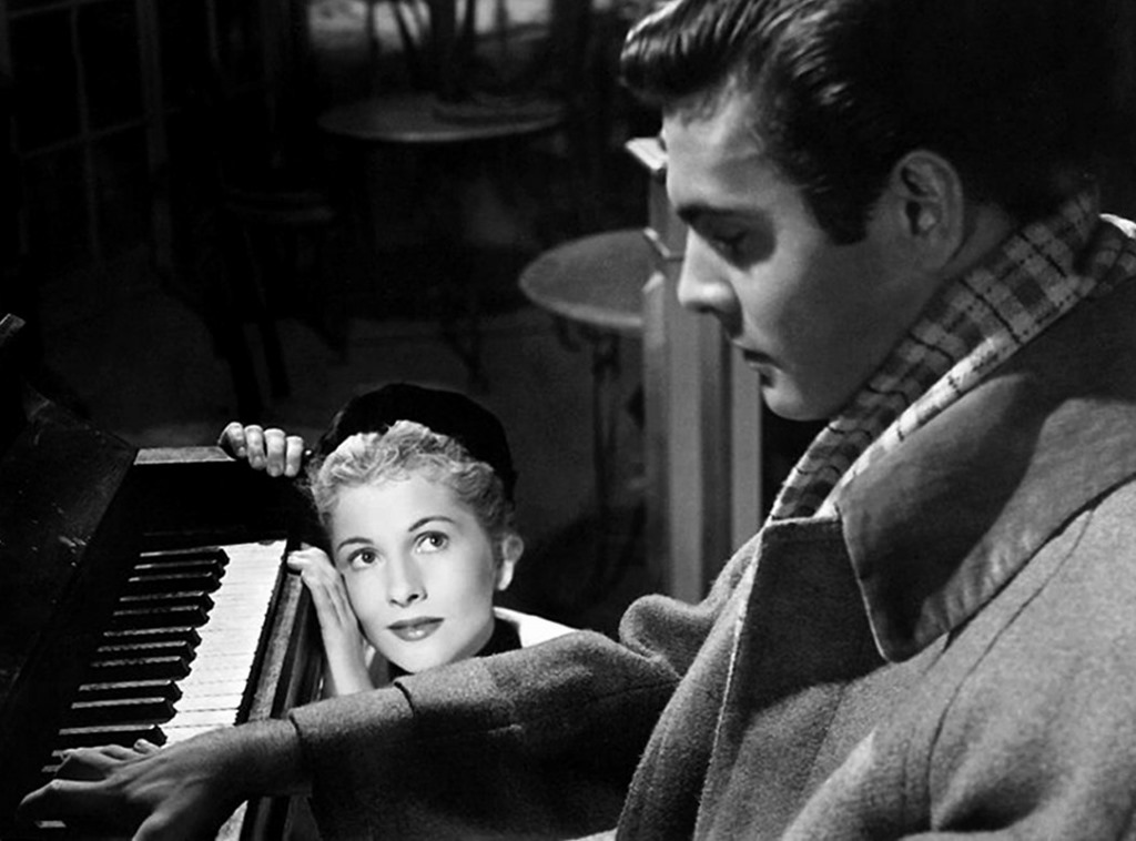 Joan Fontaine y Louis Jourdan, inolvidables en Carta de una desconocidaOtra magnífica modificación es convertir al escritor del relato en músico. Es indudable que, en cine, las posibilidades, de todo tipo, con un músico eran mayores que con un escritor, en el sentido que interesaba a Ophüls, desde la prestancia visual (y las connotaciones románticas subsiguientes) que permite la figura del pianista tocando al peso de la propia música en el relato, tanto en el orden diegético como en el narrativo, planos que aquí se funden de modo inigualable. Del mismo modo, si en Zweig el escritor parece hallarse en la cúspide de su arte cuando lee la carta, en la película los guionistas hacen que, a esas alturas, Brand, que fuera una gran promesa de la música años atrás («El público aceptó con facilidad mi música. Quizá… con demasiada facilidad», le dirá a Lisa con lucidez), sea un artista ya acabado, que hace tiempo que no ofrece conciertos y que parece deslizarse por la senda de la autodestrucción, de tal modo que su segundo encuentro con la mujer encierra la semilla de una posible redención… que acaba tirando por la borda cuando su ligereza de actitud, ese eterno hedonismo sensual que lo lleva a trivializarlo todo, le impide reconocer a esa mujer anhelante que estaba dispuesta a entregarle, de nuevo, su vida entera.