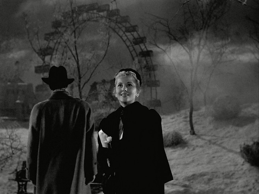La noria del Prater, testigo de la noche mágica de Lisa y StefanLos elementos atmosféricos parecen empeñados en gritar la irrealidad de la historia que nos cuentan, o cuando menos que está construida sobre el deseo y la imaginación, nunca sobre el sustrato de lo real. Así, la acción se inicia en una noche de lluvia, y la lluvia aparece detrás de las ventanas mientras Stefan lee la carta, simbolizando esas lágrimas que surcarán su rostro tan pronto descubra lo que contiene. La nieve preside la noche de felicidad de Lisa, con su capacidad para simbolizar lo evanescente, lo que es bello pero está condenado a ser fugaz, a perecer, como esas bolas de cristal que, al agitarse, crean una breve nevada en su interior. La niebla cubre continuamente esa Viena a la que regresa la adulta Lisa, y no sólo para enmascarar la sencillez de los decorados, sino para traducir el carácter de rêverie que posee su amor por el músico, para indicarnos que su historia sólo puede tener lugar en un espacio mágico, de contornos imprecisos, contenido en una caja de música destinada a ser cerrada tan pronto termine la melodía que suena.