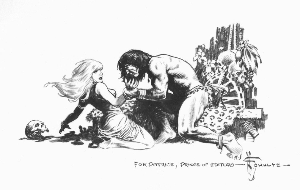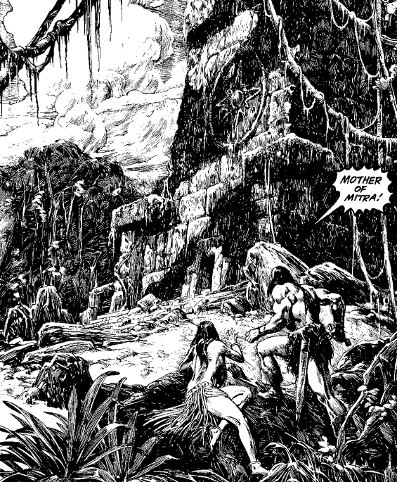 Yo también accedí a Conan antes por los tebeos que por los relatos, si bien en mi caso no fue tanto «La espada salvaje de Conan» (aunque luego la recuperé, por ejemplo, el estupendo episodio que citas) como «Conan el bárbaro», con los dibujos primero de Barry W. Smith y después de John Buscema. Por cierto que tengo pensado complementar estos artículos, a lo largo del verano, con un artículo sobre la etapa del primero de esos dos dibujantes, un auténtico genio. Intuyes muy bien cómo los dibujantes marvelitas, tanto Alcalá como Smith, tenían un amplio margen a la hora de tratar los guiones de Thomas y de otros escritores de la casa. El famoso método Marvel consistía en que el guionista sugería argumentos (no guiones detallados) y el arte del dibujante complementaba el resto. Durante décadas se alabó este método, si bien en los últimos tiempos están surgiendo voces muy críticas que, muchas veces con razón, señalan que la labor creativa del dibujante no era acreditada en toda su extensión (y por ende, tampoco se le pagaba todo cuanto merecía). En cualquier caso, Alcalá era un genio, y fue en «La espada salvaje» donde pudo desarrollar su arte, ya que era un dibujante al que beneficiaba grandiosamente el uso del blanco y negro, y por tanto de las tintas. Una gozada redescubrir todos sus episodios para el magazine.