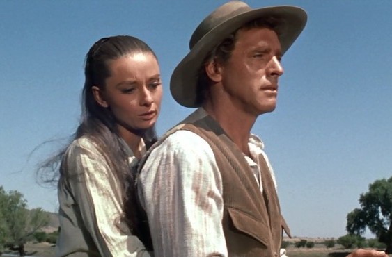 Es verdad que el guion, con inteligencia, sugiere varias veces lo inevitable de esa atracción: así, cuando Rachel, en el inicio de la historia y con incontenible alegría después de una larga separación, corre a abrazar a Ben, a quien sorprende bañándose en el río, con el torso desnudo; o cuando Ben la lleva a la grupa en su caballo, justo después del incidente en que ha golpeado, implacable, a Portugal al pensar que coqueteaba con ella. Ahora bien, aunque en teoría son momentos que desprenden erotismo, este no traspasa las imágenes: Lancaster resulta más bien patriarcal, y Audrey Hepburn, sencillamente, me parece un error de casting, tanto para encarnar esos sentimientos de transgresión sexual como para dar vida a un personaje que debía desprender más fiereza primordial (es posible, lo reconozco, que en esta apreciación me influya la lectura del libro, pero pese a mi devoción por la actriz, tampoco antes me había parecido uno de sus mejores papeles). Aun así, y como no podía ser de otro modo, la calidad y la ductilidad de ambos actores sostienen, en general, sus papeles.