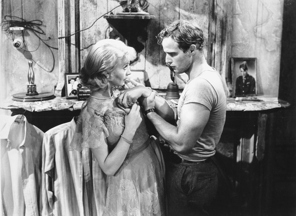 ilumina (o los deja en penumbra, como es el caso de la protagonista femenina, que así manifiesta su miedo al envejecimiento). La espléndida dramaturgia del gran Tennessee Williams (que, como siempre, se caracteriza por una tensión que bordea el exceso) es aprovechada en todas sus dimensiones, pero su principal foco, por supuesto, es la famosa confrontación entre los inolvidables personajes del agresivo y machista Stanley Kowalski y la frágil y neurótica Blanche DuBois. Una confrontación que se produce en todos los órdenes: del social al sexual, del moral al interpretativo, dando ocasión en este último aspecto a un genial duelo entre dos actores tan diferentes pero, a la vista está, complementarios como Marlon Brando y Vivien Leigh. Quien desee leer un análisis de mayor amplitud de este film puede encontrarlo en el artículo que publiqué hace bien poco sobre las películas basadas en obras del autor.