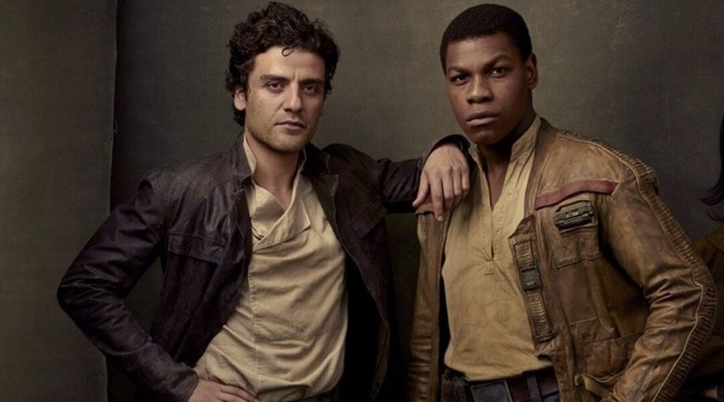 Asimismo, y como sucede en los capítulos interiores, se tiene todo el rato la sensación de que sobre Finn y Poe se crean demasiadas expectativas que luego no terminan de concretarse, como si realmente fueran meras piezas complementarias de los auténticos protagonistas Rey y Kylo (lo cual, esta vez, se revela como cierto). Eso sí, cuando menos en esta ocasión el guion consigue convencernos de la amistad inquebrantable que hay entre ambos (al estilo de los Luke y Han de la primera trilogía, de los que en cierto sentido heredan sus papeles), expresándolo a través de los divertidos diálogos que se cruzan, sobre todo aquellos que tienen que ver con el evidente amor que Finn siente por Rey. A este respecto, resulta muy inteligente que el aparente triángulo sentimental entre los tres camaradas que, a ratos, parecía evocar el de Han y Luke con respecto a Leia —hasta que Lucas se descolgó en El retorno del Jedi con la innecesaria, y estúpida, revelación de que los dos últimos eran hermanos—, evidentemente queda en nada, y es mérito del joven Boyega que no podamos evitar sentir un chispazo de pena por su amor no correspondido.