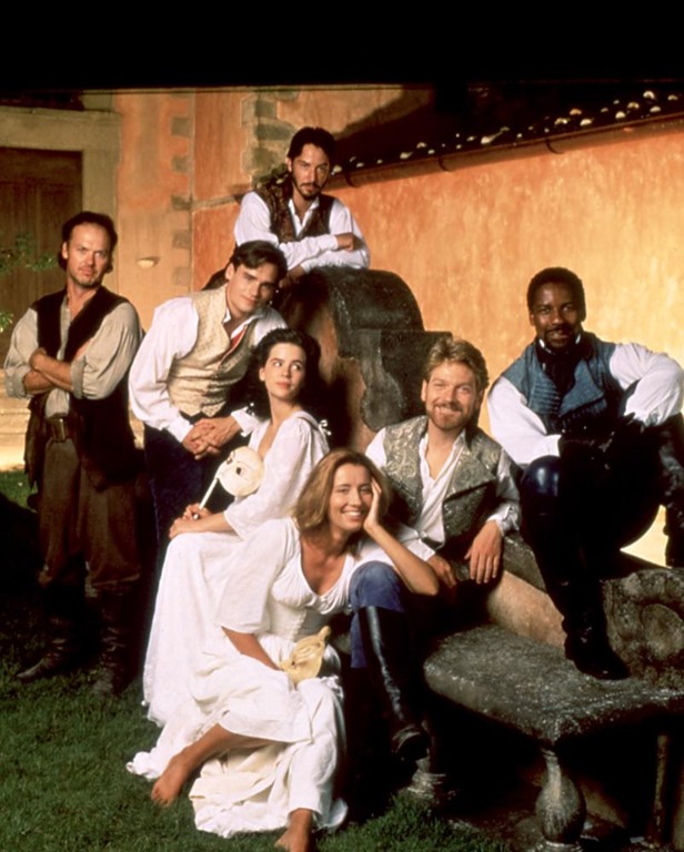 Dirección y guion: Kenneth Branagh. Fotografía: Roger Lanser. Música: Patrick Doyle. Reparto: Kenneth Branagh (Benedicto), Emma Thompson (Beatriz), Denzel Washington (Don Pedro), Robert Sean Leonard (Claudio), Kate Beckinsale (Hero), Keanu Reeves (Don Juan), Michael Keaton (Dogberry). Dur.: 111 min.