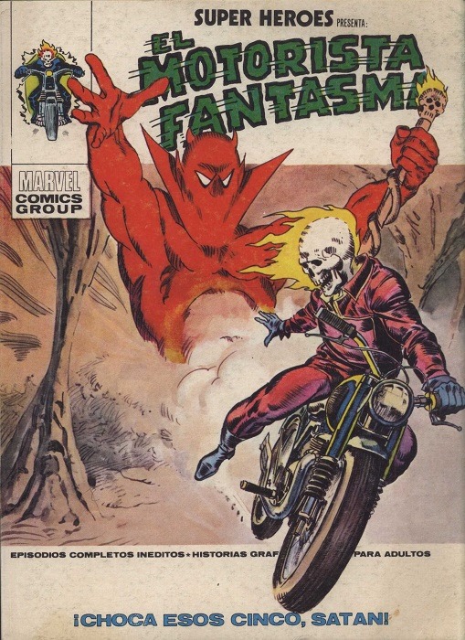 El Motorista Fantasma, en Super Heroes, por Lopez EspiCabe aplaudir, eso sí, que Vértice se propusiera publicar todas las series marvelitas y no solo las que parecieran más comerciales. Es más, creó algunas cabeceras a modo de «contenedor», bajo los títulos de Super Héroes o Héroes Marvel, donde tenían cabida, en números alternativos, todas esas colecciones secundarias. Digo más: Torra no vaciló en publicar, a lo largo de toda la trayectoria de Vértice, series que, en el momento de iniciarse en España, se sabía que ya habían sido cerradas por falta de éxito. La cuestión es que esto permitió conocer el Universo Marvel del uno a otro confín, afianzando ese logro supremo del original de cohesión entre todos sus personajes y colecciones, que fue una de las claves de su éxito. Pudieron leerse allí Warlock, El Motorista Fantasma, Los Inhumanos, Kull o las viejas series de monstruos y ciencia-ficción de la casa.