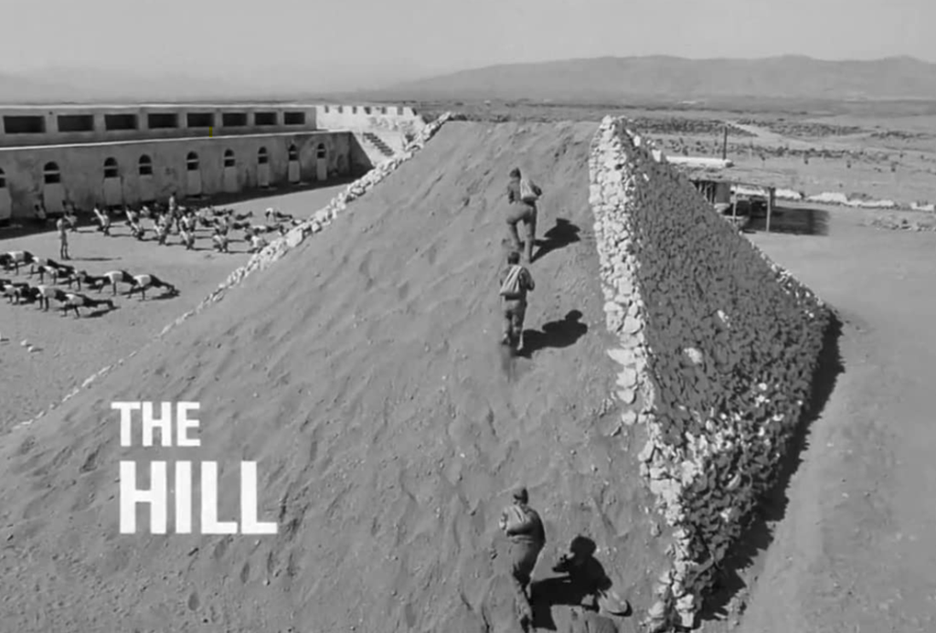 El desarrollo argumental de La colina va a girar, precisamente, en torno al modo en que esos cinco hombres deben ser metidos en vereda (aunque, claramente, el objetivo del tratamiento es Roberts). Wilson se los encomienda a Williams (Ian Hendry), un guardián recién llegado al centro, que no solo anhela hacer méritos cuanto antes sino que, además, encierra a un sádico irredimible, quien no dudará en aplicar la mayor dureza a los cinco reclusos. Eso sí, tan pronto descubre que Roberts es demasiado fuerte, incluso para él, volcará su ira sobre el más débil del quinteto, el joven Stevens (un pobre diablo cuyo delito había sido abandonar su pelotón para volver a casa a ver a la esposa cuya ausencia no soporta: significativamente, él no lo considera deserción), quien acabará muriendo debido a la presión física a que lo somete. Una presión que tiene como centro la «colina» que da título a la película, un montículo artificial levantado en medio del campo que los reclusos deben subir una y otra vez, a la carrera, siempre que son sometidos a castigo.
