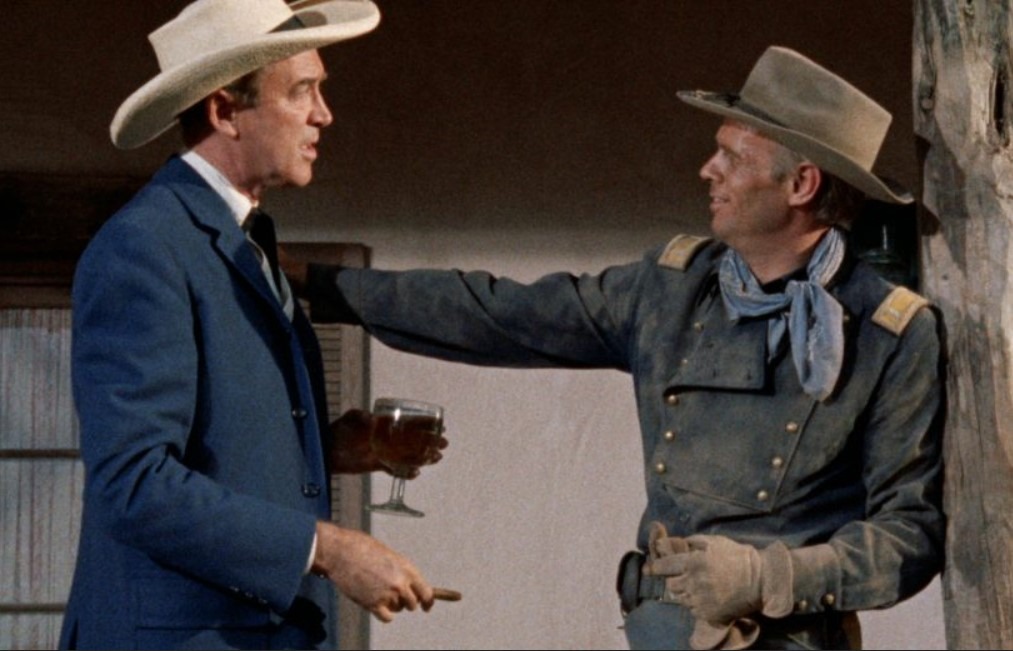 Para mayor desconcierto (y por eso hablaba al principio de la diversidad de puntos de fuga), el inicio de la película está presidido por un indiscutible humorismo, el mismo que desprende tanto el personaje como la relajada interpretación de James Stewart en la primera de las tres películas que rodó para Ford en estos años (con lo cual consiguió el nada desdeñable mérito de haber sido actor recurrente de nada menos que cuatro genios del cine: Frank Capra, Anthony Mann, Alfred Hitchcock y nuestro irlandés).