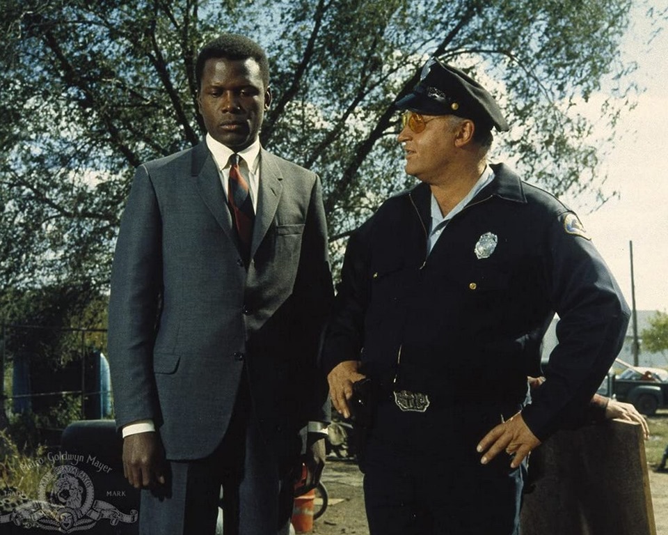 Aun cuando la realización de Jewison abunda en los efectismos tan habituales de este (en sus mejores tiempos, fue uno de estos numerosos directores que creyó que ser moderno es llamar la atención con recursos visuales exagerados) y que la confrontación entre dos seres en principio tan antagónicos es la previsible, lo cierto es que En el calor de la noche es uno de los films que menos ha envejecido de la carrera de Poitier. En buena medida, se debe al excelente retrato de esa comunidad recluida en sí misma, claramente incapaz de progresar ni moral ni materialmente: se acaba teniendo la sensación de que el industrial está muerto porque estorbaba, porque era una disonancia con su propósito de traer la modernidad a Sparta, aunque la explicación será más trivial y, por tanto, más sórdida, lo cual es otro acierto. La atmósfera también es espléndida, tanto visual como sonora, destacando en este caso la banda sonora de Quincy Jones, con su canción titular a cargo de Ray Charles. Y claro, también lo son interpretaciones de Poitier y de Rod Steiger, que fue quien se llevó el Oscar: hay que reconocer que su papel es más complejo, mientras que el primero, a estas alturas, ya no sorprendía. Destáquese un momento que en su día debió de ser muy impactante (no digamos para los espectadores racistas): cuando Tibbs le dice al cacique local que está en su lista de sospechosos, este, sintiéndose terriblemente injuriado por ese tipo al que desprecia por su color, le suelta una bofetada… y el policía replica, de inmediato, con otra no menos sonora.