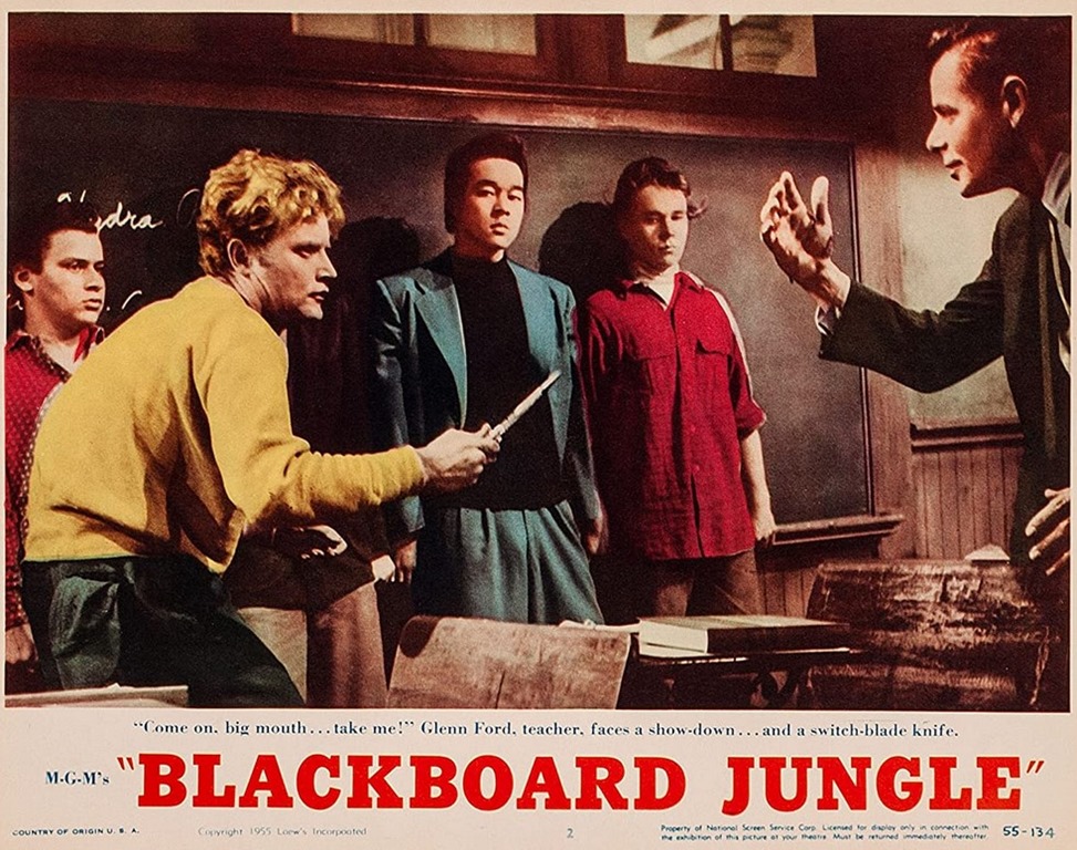 Se trata de Semilla de maldad (1955), película dirigida por Richard Brooks que aborda el problema de la conflictividad en los institutos de los barrios pobres, una de las caras visibles de esa violencia juvenil que de pronto emergía como uno de los grandes problemas de las grandes ciudades. Poitier encarna a Miller, el estudiante (¡con 28 años!) más carismático de la conflictiva clase del profesor Dadier (Glenn Ford), un hombre que acaba de iniciar esa senda profesional y no sabe cómo afrontar el problema de unos alumnos a los que, es evidente, la educación les trae sin cuidado. El racismo no es aquí el problema central, aunque también se plantee pues el instituto es un melting pot de etnias de distinta procedencia, sino la falta de horizontes de esos chavales y, por tanto, la tentación de la delincuencia (algo que Poitier había conocido en primera persona, como ya he señalado). Aunque, como es natural, la resolución acabe pecando de ingenuidad, de noble ingenuidad, debe reconocerse la considerable fuerza descriptiva que posee la película, sobre todo en todas y cada una de las escenas que suceden dentro del aula entre el atribulado pero firme profesor y esos alumnos entre los que se esconden tipos violentos ya sin remedio y otros dispuestos, a poco que alguien los ayude, a mantenerse dentro de la senda de la honradez. Huelga decir que Poitier encarna esta segunda vía, y lo hace mediante un personaje que no es blando, que también obliga al profesor a batirse con toda su tenacidad para ganárselo.