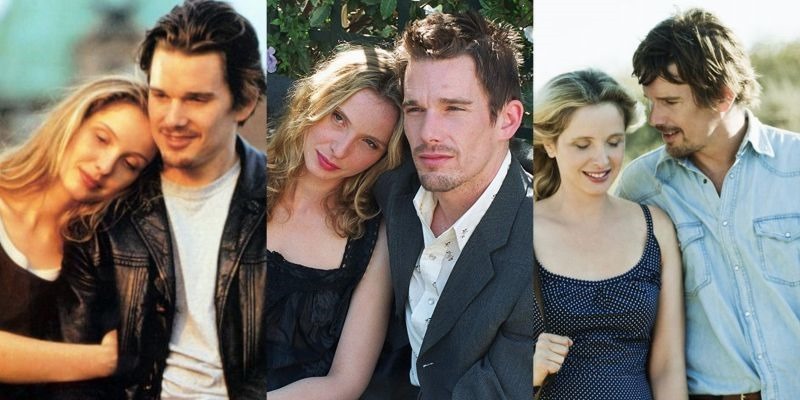 En esa década inicial del siglo XX seguí muy poco la carrera del actor, al que realmente redescubriría años después a través de las proyecciones domésticas. Me pareció curioso leer que aquel film para mí anodino que había sido Antes de amanecer tuviera una continuación, situada nueve años después, y al parecer planteando la misma situación de encuentro durante un pequeño intervalo de tiempo de la misma pareja protagonista, ahora en París, bajo el título de Antes del atardecer (2004), y que otros tantos años más adelante se convertía en trilogía con una nueva entrega, Antes del anochecer (2013), cambiando otra vez el escenario para situarse en las islas griegas. Siempre bajo dirección de Richard Linklater, siempre con la francesa Julie Delpy al lado de Hawke, siempre con los actores participando en el guion (y siendo las dos veces nominados por esta labor). Para mayor asombro, esa trilogía iría alcanzando un inesperado culto y revelantes críticos que para mí suelen ser una garantía (comenzando por Carlos Aguilar, rendido admirador de la segunda entrega) se deshacían en elogios de ella. De modo que, tarde, decidí sentarme a verla, comenzando, claro, por la primera película.
