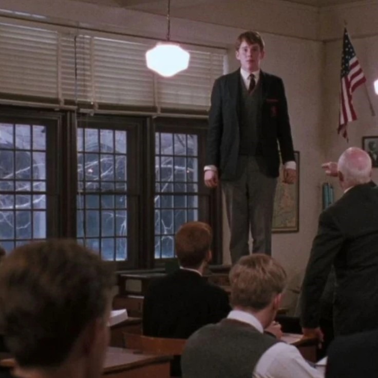 Oh capitán mi capitán, dice Ethan HawkeAhora bien, cuatro años después fue elegido en un nuevo casting para interpretar a uno de los alumnos fascinados por el maravilloso profesor de literatura (¿hay alguna otra asignatura que pueda maravillar a los jóvenes sensibles?) que acaba de llegar a la rígida institución escolar donde transcurre la acción y que no permitirá el pequeño soplo de libertad que (supuestamente) ha traído. Hablo, claro, de El club de los poetas muertos (1989), un título que en su día —cuando ni de lejos podía sospechar que yo mismo sería profesor, aunque no de literatura— me pareció blandamente sentimental. En concreto, no «perdoné» a Hawke que su personaje fuese el primero que inicia el famoso homenaje final en despedida al profesor poniéndose sobre la mesa, ante la irritación del mismísimo director del colegio (en otro artículo explico por qué me parece tan falsa esta secuencia), recitando el famoso «Oh capitán, mi capitán».