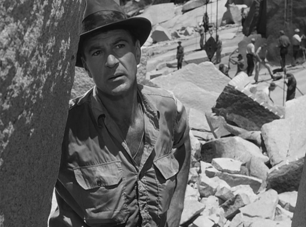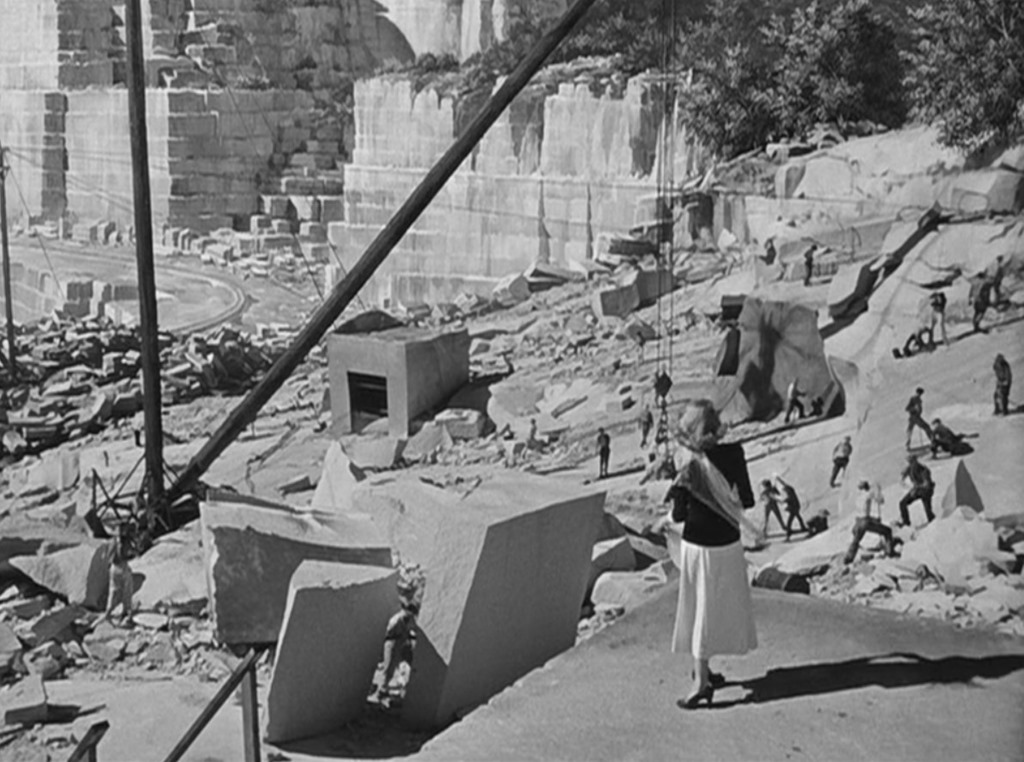 ¡Tarda más en ser escrito y leído de lo que dura en pantalla! Desde ese arranque, en que se dedica al personaje un solo plano y se le deja hablar una sola vez, nada más necesitamos saber acerca del mismo, porque cuanto hará en el resto de la historia es mera confirmación de lo que los otros ya han expresado de él. Es por eso que señalaba que no es Roark quien busca el Absoluto porque él ya lo posee: él ya lo es. Son los demás personajes quienes, ante el supremo reto que supone relacionarse con él (cada uno a su manera), deben reaccionar en consonancia. Y buen ejemplo de esa formidable paranoia narrativa es el modo en que presenta a los demás personajes centrales, encadenándolos unos a otros de modo sucesivo, en especial a la mujer que Roark amará y al hombre que creerá estar a su altura.