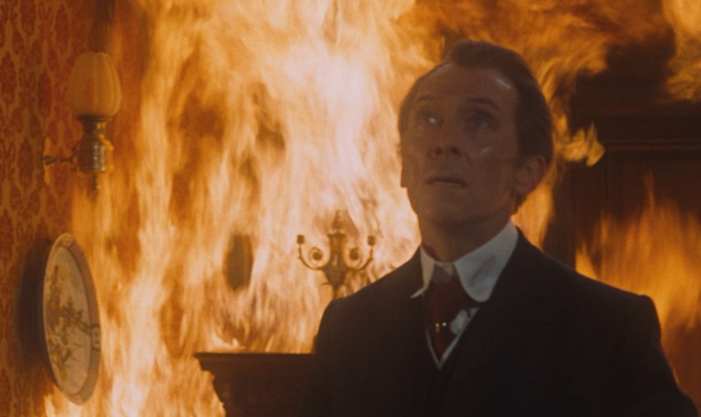 En cuanto a Fisher, igualmente memorable es su trabajo. Valga como ejemplo el increíble inicio, que muestra los pasos acechantes por una calle oscura de un individuo al que sólo se encuadra de cintura para abajo, que porta una ominosa sombrerera, y que acecha a su víctima hasta cortarle la cabeza con una hoz (el último plano resulta subjetivo, y es genial ese cabeceo del encuadre, pues corresponde al punto de vista del hombre que acaba de perder su testa). Y no digamos la fuerza extraordinaria del final, el combate entre esos dos científicos que comparten el hecho de no estar ya en el cuerpo con que nacieron (recordemos The Revenge…), solo que uno, Brandt, admite la monstruosidad de la circunstancia y desea acabar con todo, y el otro todavía tiene el propósito de perdurar. La imagen de Brandt cargando sobre sus hombros a Frankenstein y arrojándolo entre las llamas que inundan la casa posee una fuerza imborrable.