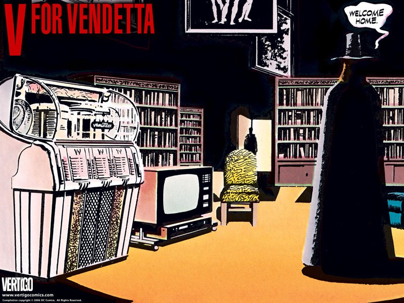 Según los libros de Historia, Guy Fawkes fue la cabeza visible de una conspiración católica, llamada «de la pólvora», cuyo objeto era volar el 5 de noviembre de 1605 el Parlamento inglés, con el rey y todo su gobierno en plena sesión. Detenido y ejecutado, enseguida sería objeto de execración o burla, bajo la forma de maniquí destinado al fuego, en esa conmemoración del acontecimiento que tiene lugar cada año, en ese día, que en España nos recuerda mucho a la Noche de San Juan. El rostro de Fawkes, convertido en máscara, es un poderoso icono de los tiempos actuales, y su forma definitiva procede de un espléndido cómic titulado V de Vendetta, cuyos responsables fueron el guionista Alan Moore y el dibujante Dave Lloyd. A este último se le debió la sugerencia de utilizar a Fawkes como reconocible avatar del protagonista del tebeo, el tal V, idea que fue adoptada con entusiasmo por Moore al encontrar así la piedra miliar sobre la que construir su carismático personaje. En su ficción, Moore utilizó elementos del cómic adulto y del cómic popular para situarnos ante una denuncia de la amenaza del totalitarismo —la cual siempre comienza con un resurgimiento del autoritarismo que cuestiona algunos de los valores de la democracia con la excusa del peligro de las esencias nacionales— bajo el formato de clásica antiutopía. El resultado, la primera de esa serie consecutiva de obras maestras (Miracleman, Watchmen, La Cosa del Pantano…) con las que el guionista revolucionó el panorama del cómic y que lo convirtió, junto a Frank Miller, en el artista más influyente del final del siglo XX.
