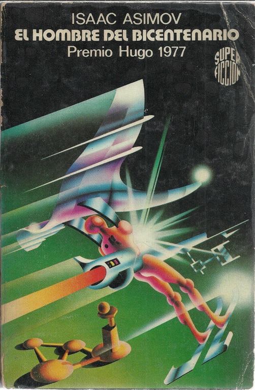 Antologia de Martinez Roca con El hombre del bicentenarioPese al éxito, Asimov siguió practicando poco el género que le daba fama, aunque a esa época pertenece algún cuento de gran éxito, como el muy discutible El hombre del bicentenario (1976). Es la historia de Andrew, un robot que, por un azar de la programación, desarrolla unas aptitudes artísticas —es decir, posee una habilidad de autonomía plenamente humana— a partir de las cuales va desarrollando progresivamente el deseo de ser un hombre no ya en igualdad de derechos, sino de esencia mediante las biotransformaciones necesarias. Aunque parece un cuento muy asimoviano acerca de la férrea determinación de un ser consciente de su singularidad, sin embargo sucede lo contrario, pues el protagonista, en su afán por desprenderse de lo que lo hace único y abrazar la homogeneidad humana, lo que hace es contradecir la noble defensa de la diferencia tan propia del autor, quizá porque a este le ofusca la presunta brillantez de la premisa. Sin duda, esta contiene el germen de una gran idea, que Asimov, por desgracia, ni siquiera vislumbra: la humanidad del robot se encuentra no en su propósito de derribar toda barrera, incluso física, con el hombre, sino en su forma de entregarse a una obsesión autodestructiva (pues esa transformación implica el abrazo de la mortalidad). El relato, por tanto, resulta inesperadamente pueril y supura de la blandura que muchos detractores han atribuido al autor, por una vez con razón: no es sensible; es sensiblero. Es más, ni siquiera funciona el punto fuerte del escritor: la descripción de los cambios que se producen en el mundo durante los doscientos años del cuento, pues al final casi parecen reducidos al cambio de moda en la vestimenta. Descorazonadoramente, Asimov siempre lo consideró una de sus mejores obras.