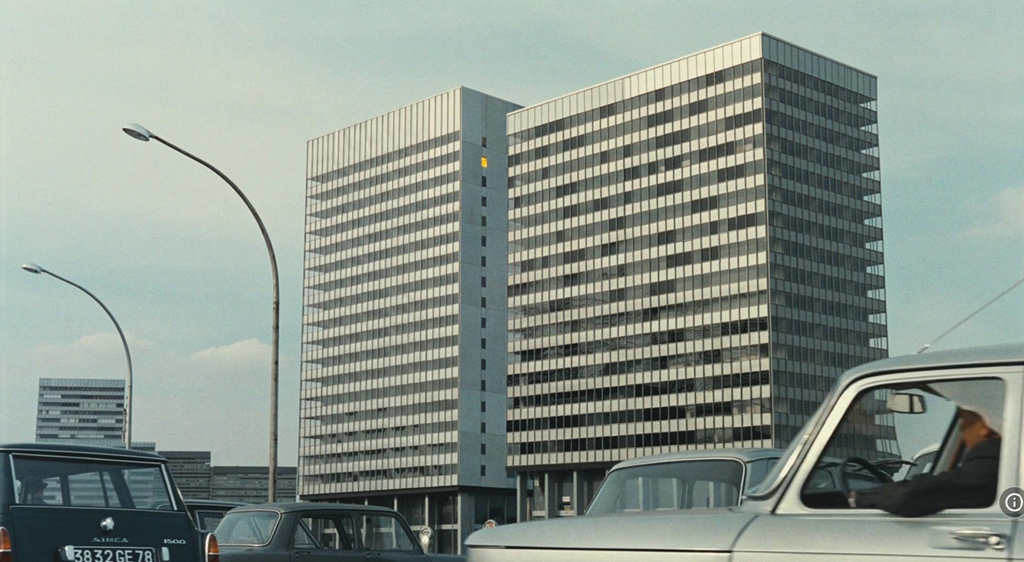 Y por cierto, no puede ser casualidad que en este lugar uno de los camareros se parezca indiscutiblemente a Julius Kelp, el profesor chiflado, creándose un muy consciente vaso de comunicación entre el cineasta francés y el gran Jerry Lewis, que en esos años era sin la menor duda la figura cómica más conocida del mundo (de hecho, ese plano con grúa que muestra los cubículos que forman la oficina tiene un indudable eco, en horizontal, de la «casa de muñecas» vertical con la que Lewis muestra la residencia femenina donde se desarrolla su espléndida comedia El terror de las chicas, de 1962).