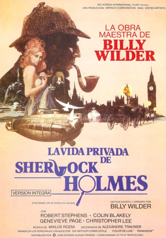 Mi primer Holmes, antes incluso de leer los relatos de Conan Doyle, fue el de la Hammer encarnado por Peter Cushing en «El perro de Baskerville» (y desde entonces siempre ha sido mi favorito). Después seguramente llegaría el Holmes perruno de Miyazaki, con el mejor Moriarty de todos los tiempos («jajejijoju»), y ya en cascada los cuentos y todas las demás versiones. La de Wilder la vi con poco más de veinte años en una sesión especial en Málaga, en cine (mi primer Holmes en pantalla mágica) y desde entonces me parece la mejor versión del personaje.