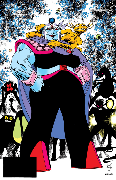 De entrada, Thorpe situó al Capitán en una Inglaterra paralela a la suya propia, dando origen así al sabroso entramado de múltiples dimensiones, o multiverso, del que Alan Moore, pronto sustituto de Thorpe, sacaría tanto partido. Moore da en el clavo cuando afirma que este concepto, entonces, era fresco y estaba abierto a fascinantes posibilidades, pero el tiempo lo iría convirtiendo en un fastidioso lugar común utilizado para cualquier tontería supuestamente ingeniosa (no hay sino que ver lo que está haciendo con él la Marvel cinematográfica actual). Britania descubría que ese mundo estaba a punto de caer bajo el dominio de un genio del mal con el poder de alterar la realidad, el Loco Jim Jaspers (al que Davis da en verdad una expresión absolutamente depravada). Un grupo de centinelas dimensionales, liderado por la altiva Saturnina, ha sido comisionado por la Corte de Desarrollo Dimensional (la institución guardiana del multiverso, que recuerda mucho a esa Eternidad creada por Isaac Asimov en su excelente novela de 1955 El fin de la Eternidad) para modificar las circunstancias y la mentalidad destructiva de sus habitantes y enderezar su rumbo.