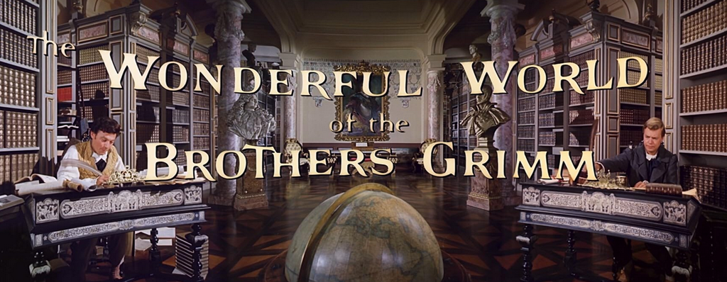 El maravilloso mundo de los hermanos Grimm (1962) fue un proyecto mucho más ambicioso, y no por las figuras biografiadas sino por las características de la producción. Se trató de la segunda y última película de ficción filmada en el ostentoso formato del Cinerama, seguramente el más espectacular intento de Hollywood por atraer a esas masas de espectadores perdidos en beneficio de la televisión, como antes habían sido el CinemaScope o las tres dimensiones. El Cinerama era un formato de considerable anchura (2.59:1) —por comparar, el formato más ancho generalizado en la actualidad suele ser de 2.35:1— que se conseguía al ser proyectado en tres partes unidas por tres cámaras diferentes (con las cuales también se había hecho la filmación) sobre una pantalla curva. Había sido creado en torno a 1956 e inicialmente se utilizó casi como reclamo de feria, mediante productos documentales con objeto de impresionar con el tamaño y la imagen envolvente al espectador (y dejar en menos, claro, el diminuto resultado que se obtenía en el televisor doméstico).
